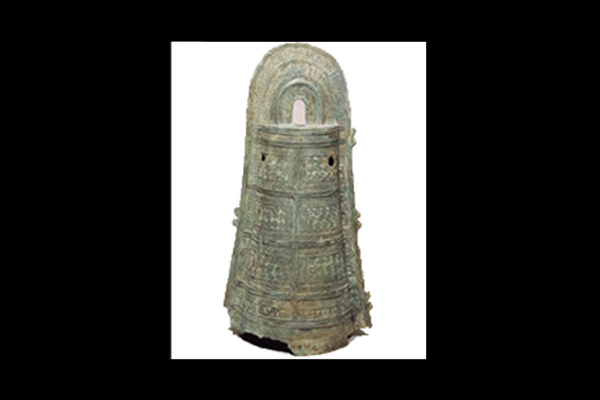 (名古屋市瑞穂区軍水町中根出土・弥生時代・高さ83.2cm) 銅鐸は弥生時代に用いられたブロンズ製の鐘(ベル)のこと。当初は小型で、実際に鐘として使用されていたが、次第にこの出土品のように大型化し、宗教的なシンボルとして扱われるようになった。 この銅鐸は全面に渦巻きの文様があるのが独特で、重要文化財に指定されている。