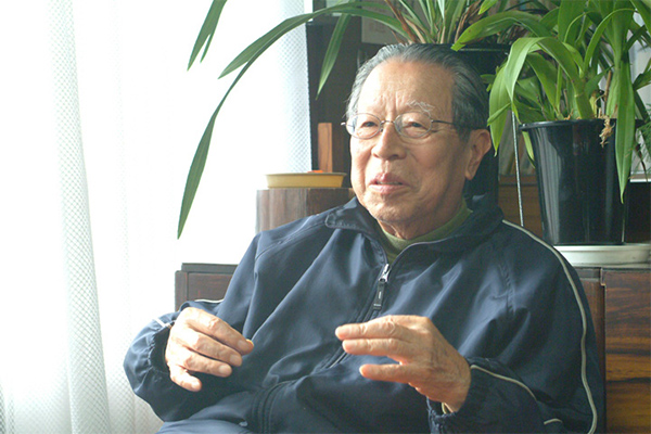 その脇にしつらえた和洋折衷の応接室で萱島家の歴史を語ってくれるのが、蔵元四代目の故 萱島 須磨自(すまじ)会長です。穏やかな口調と容貌が気品を感じさせ、白眉の印象を与えます。