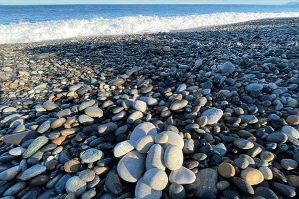糸魚川のヒスイは日本列島誕生より遥か昔、5億2000年ほど前に大きなプレートの活動により、深い海の底で誕生しました。その後も続いた地殻変動により地表に押し上げられ、風化や浸食により山から川へ運ばれ、糸魚川の海岸では今でもヒスイを発見することができます。