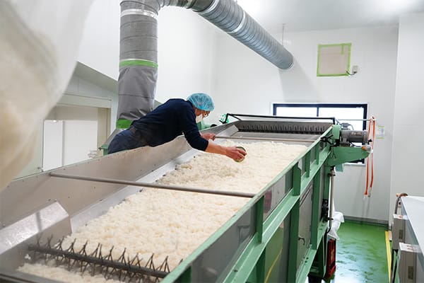 原料の米は、現在全体の9割以上を五百万石が占めています。中でも、地元新潟産の比率は年々増えているとのこと。「お米は同じ品種でも、作る場所や作る人によって品質や味に違いが出ますからね。やはり、地元の米は地元の水とも相性がよいですし、農家の方と直接お話しする機会もあるため、意見を交換することで、こちらの求めるお米を作っていただきやすいというメリットもあります」